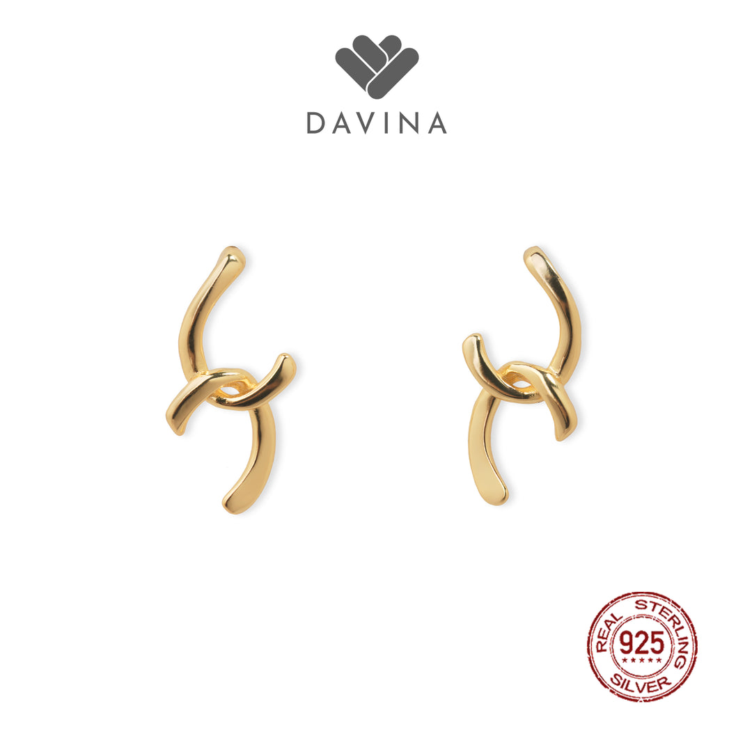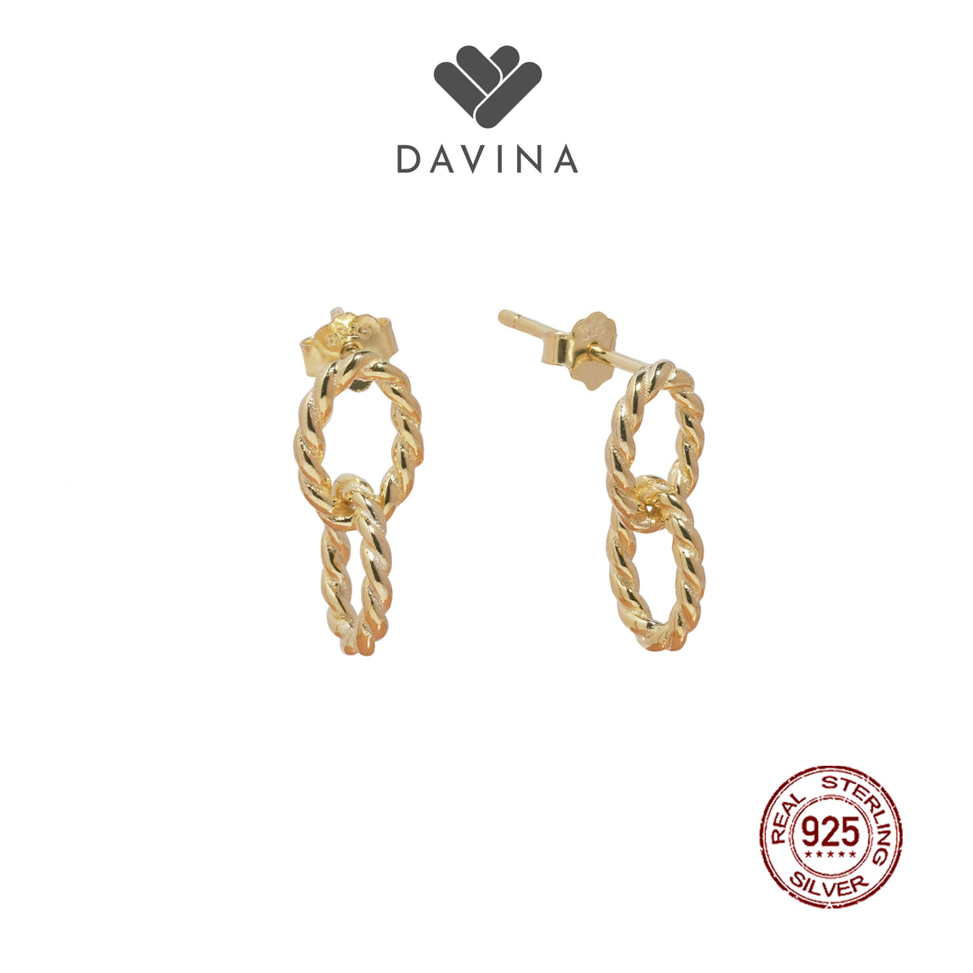 DAVINA Ladies Twilla Earrings Gold Color Sterling Silver 925