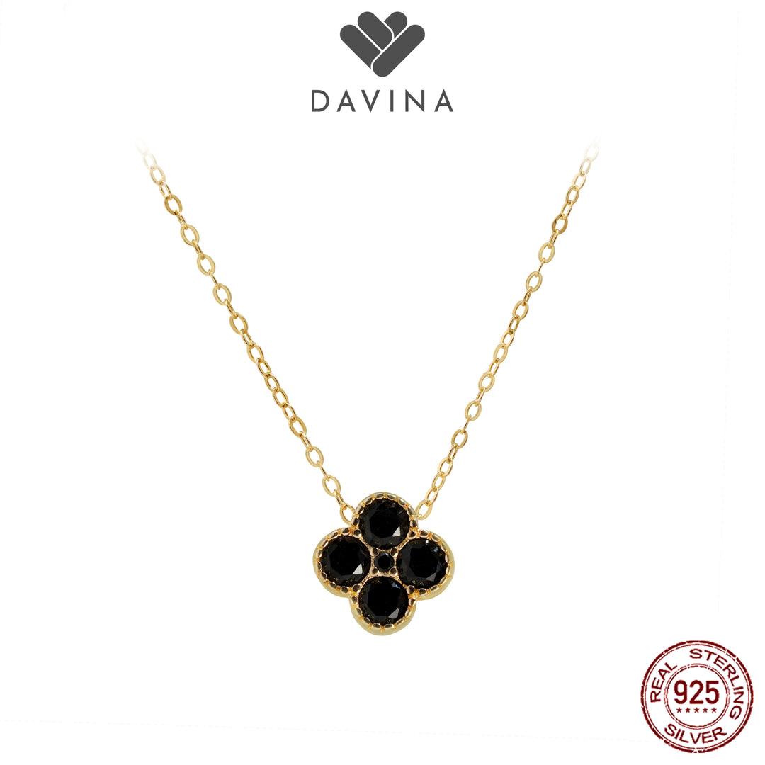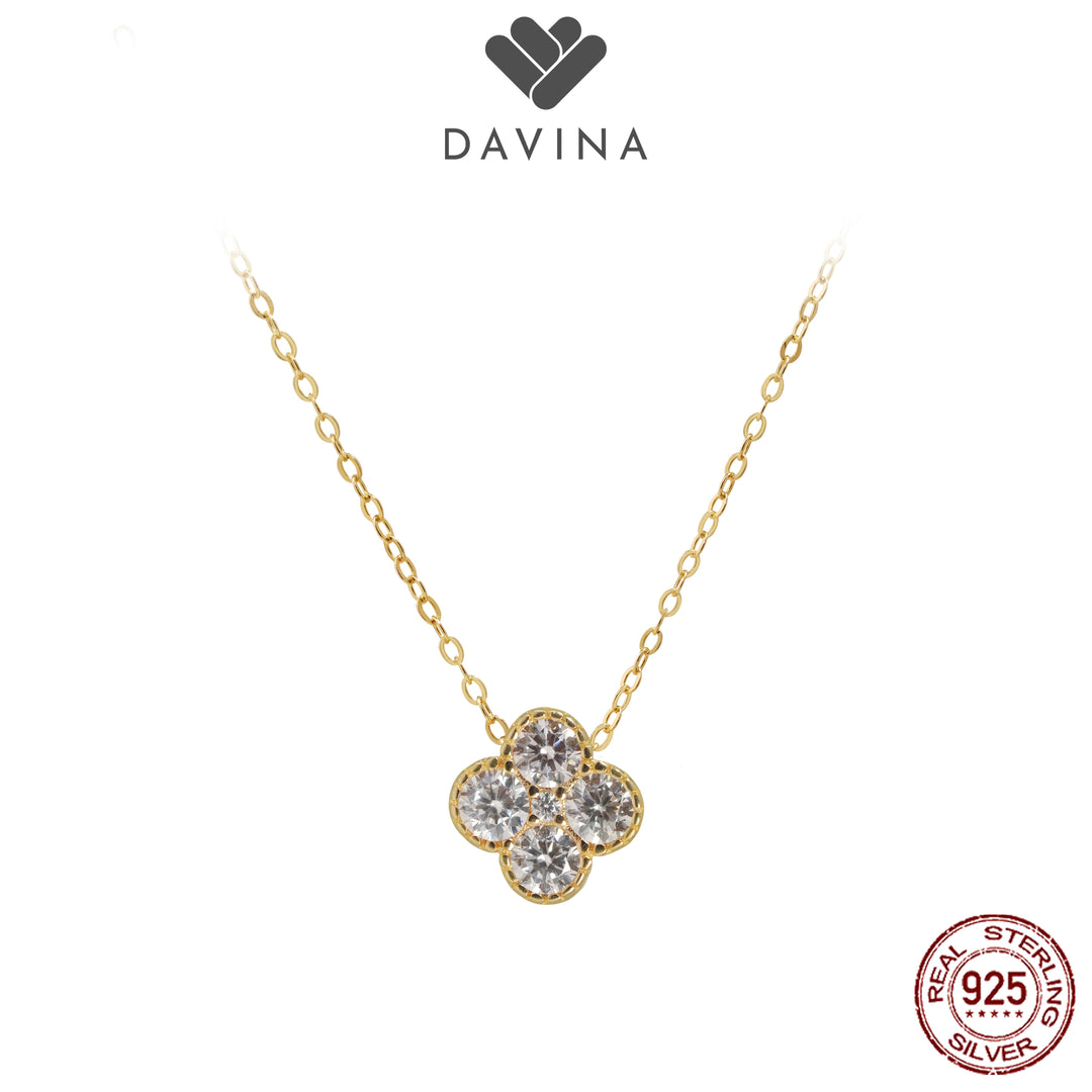 DAVINA Ladies Birthstone Necklace Gold Color Sterling Silver 925 - Kalung Clover Diamond Color