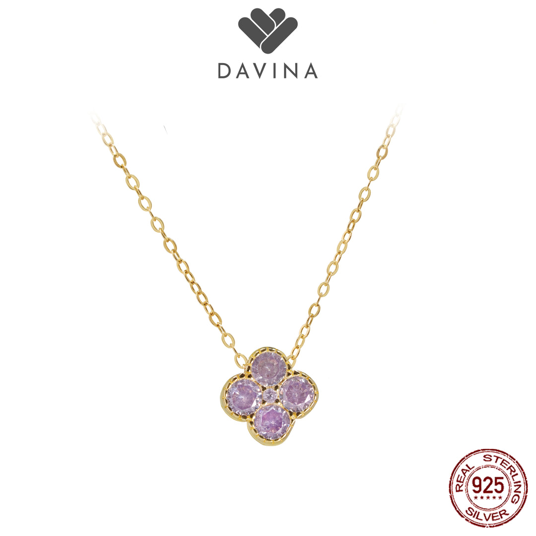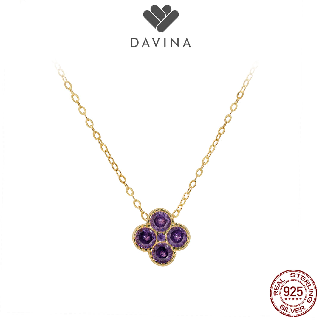 DAVINA Ladies Birthstone Necklace Gold Color Sterling Silver 925 - Kalung Clover Amethyst Color