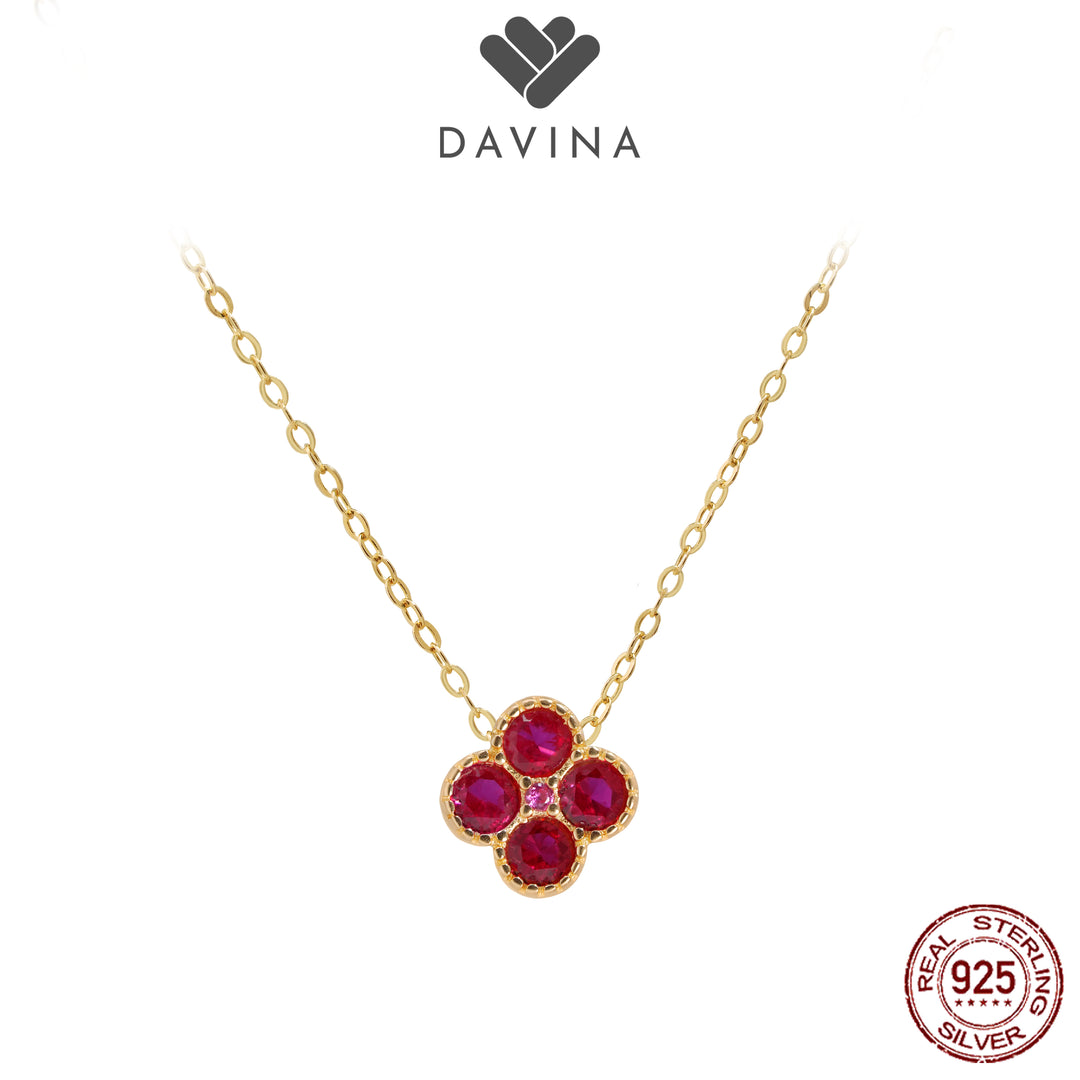 DAVINA Ladies Birthstone Necklace Gold Color Sterling Silver 925 - Kalung Clover Ruby Color
