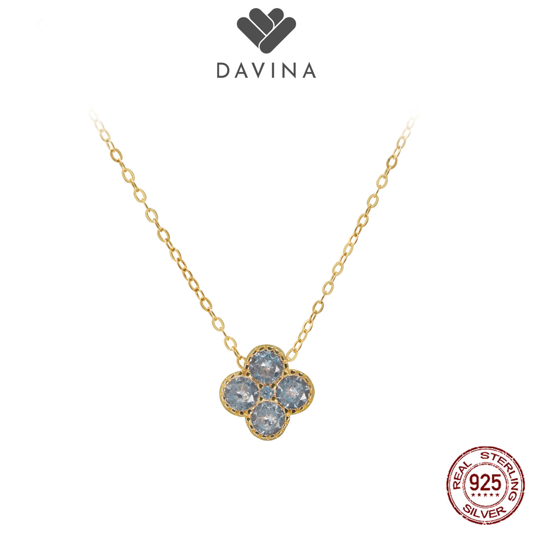 DAVINA Ladies Birthstone Necklace Gold Color Sterling Silver 925 - Kalung Clover Aquamarine Color